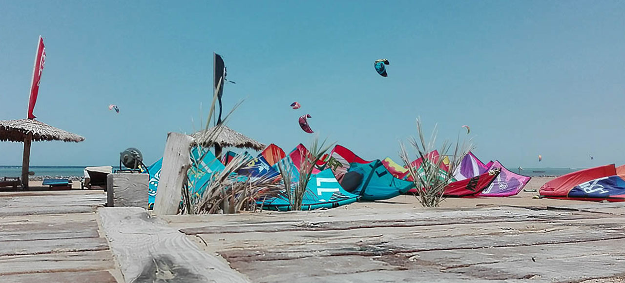 COLONA WATERSPORTS is located directly in one of the best and biggest spot for Kitesurfing in Hurghada (around 1 Kilo meters). The Beach is split into two kitesurfing areas; the school bay (Spot #1), a training bay for beginner and for people who are getting up and riding but are not yet confident with their skills. (Spot #2) an intermediate/advanced area for those people who can ride up-wind confidently.